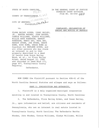 Because of inaction on the part of the City of Brevard, property owners have had no other choice but to pursue a legal remedy.