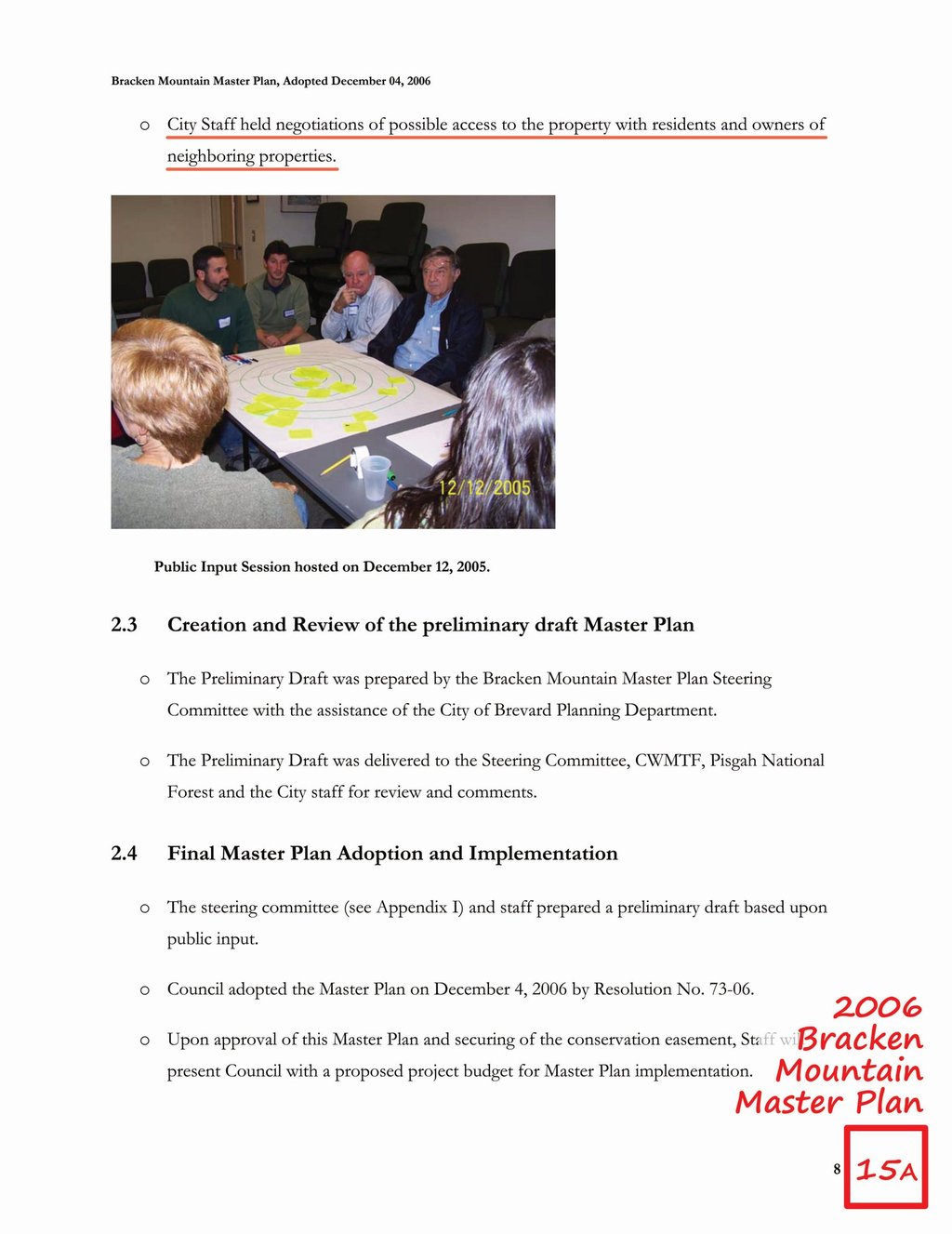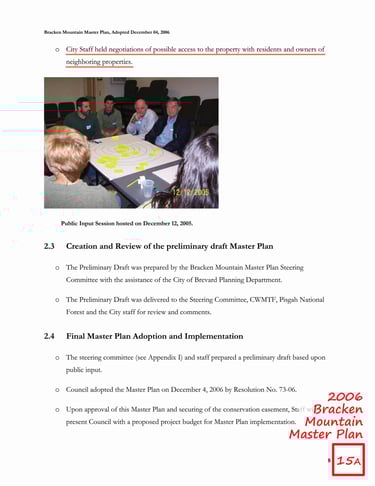 Bracken Preserve Master Plan, pg. 8 & 10 - regarding access, owners of neighboring properties, and Mackey Ridge Road.